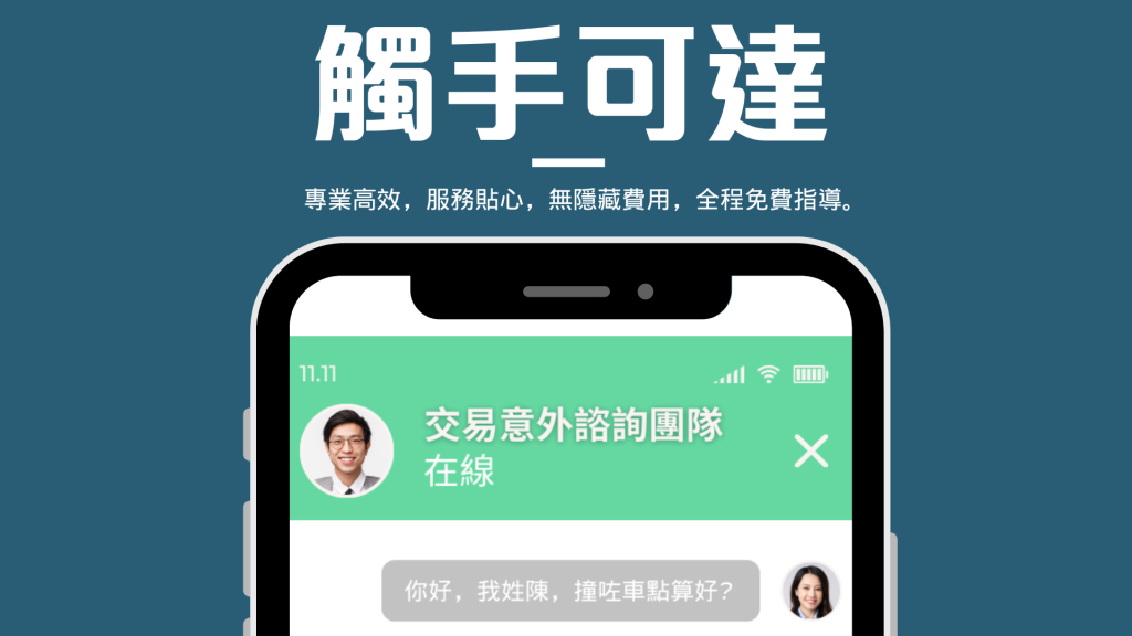 發生交通意外後,請立即報警並儘快就醫,保留所有相關文件。我們將協助處理口供、維修報價及所有法律程序,確保您獲得應有的賠償。無論是司機、車主或乘客,我們全程提供律師轉介專業支援。