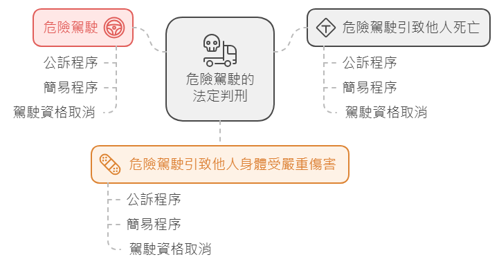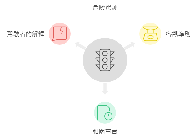 危險駕駛指駕駛行為明顯低於合理標準,對他人或財產造成顯著風險。常見例子包括嚴重超速、衝紅燈、賽車等。若被定罪,最高可判罰款和監禁,並取消駕駛資格。